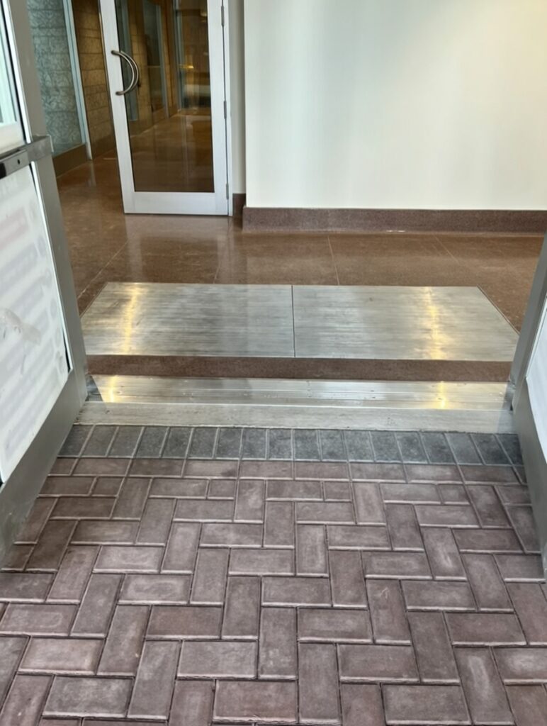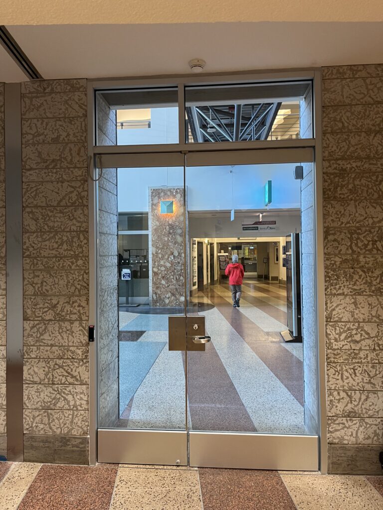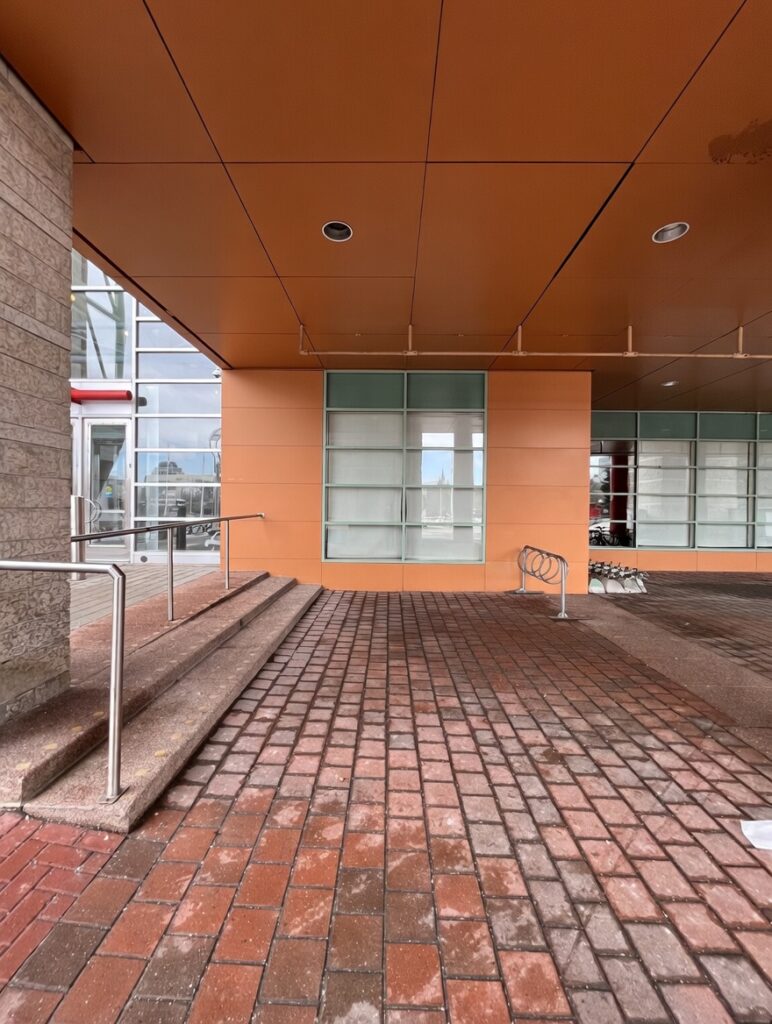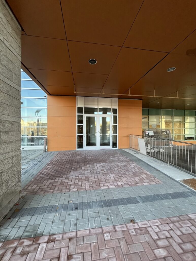 New work included a new exterior ramp, installation of new glazing systems and doors, flooring system including terrazzo with cove base and integrated foot grille, and full integration of security system, c/w integration of new electrical, and mechanical to the existing building.