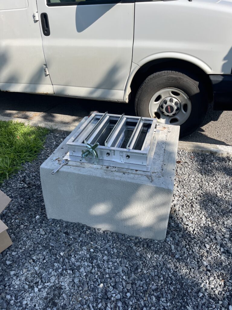Replacement and rehabilitation of 40+ vents and hatches throughout the campus , including lead-paint removal, demolition, landscaping, and installation of various custom-fabricated enclosure assemblies tailored to existing field conditions.