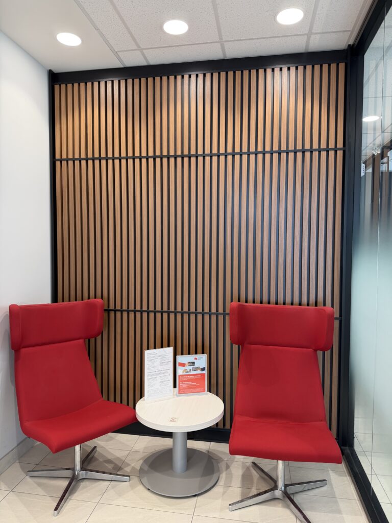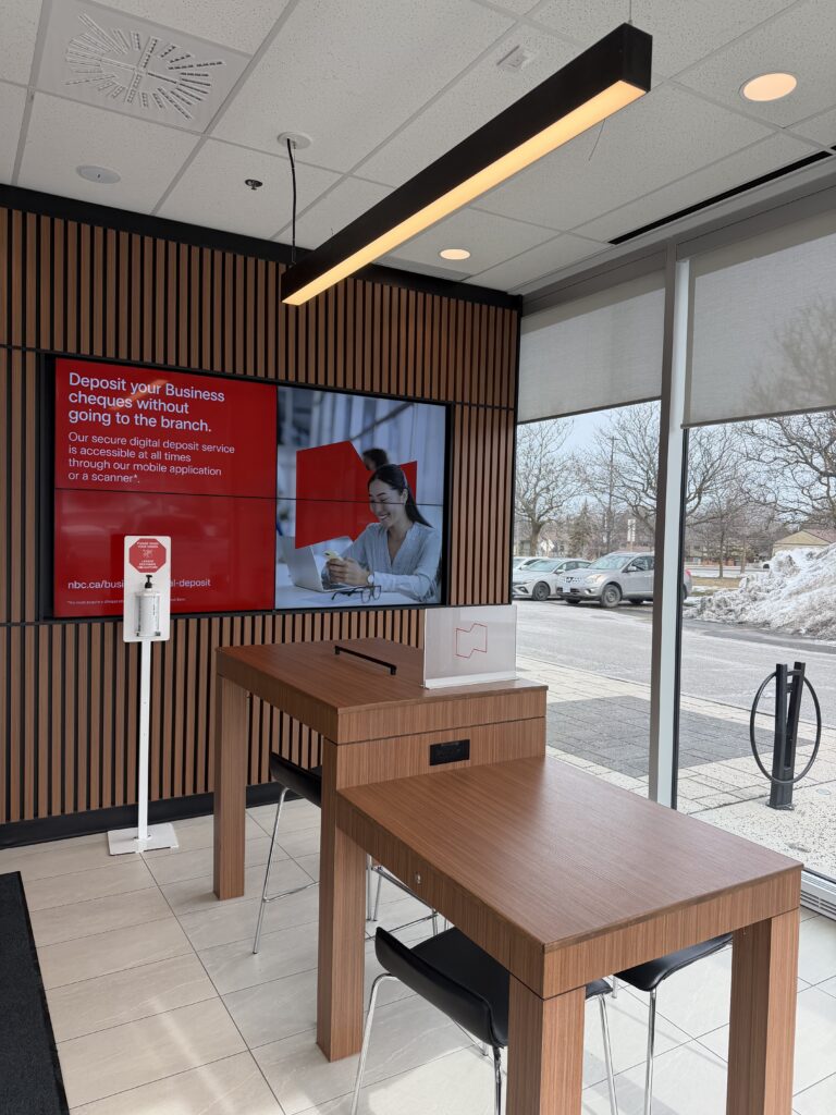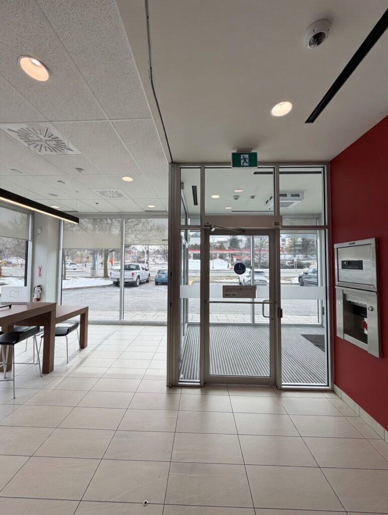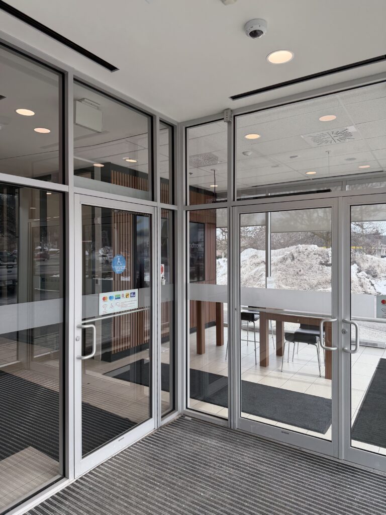 Full interior fit-up of a 3,200 sq.ft. financial institution branch, including temporary shoring for installation of a walk-in vault, custom millwork, interior glazing, accessible washrooms, and high-end finishes. Completed on schedule with strong client satisfaction.